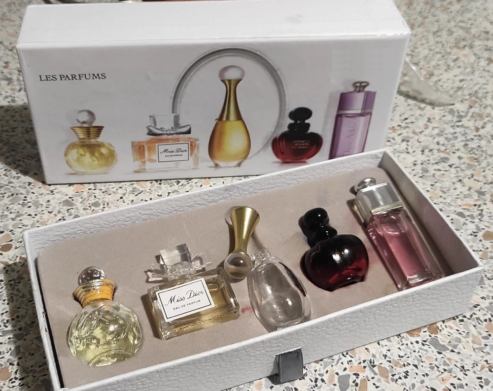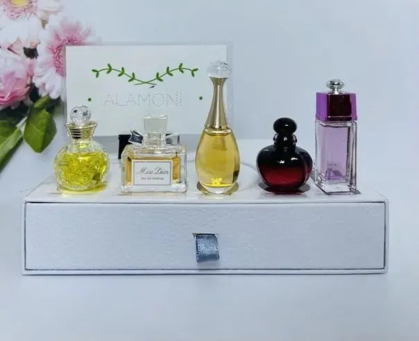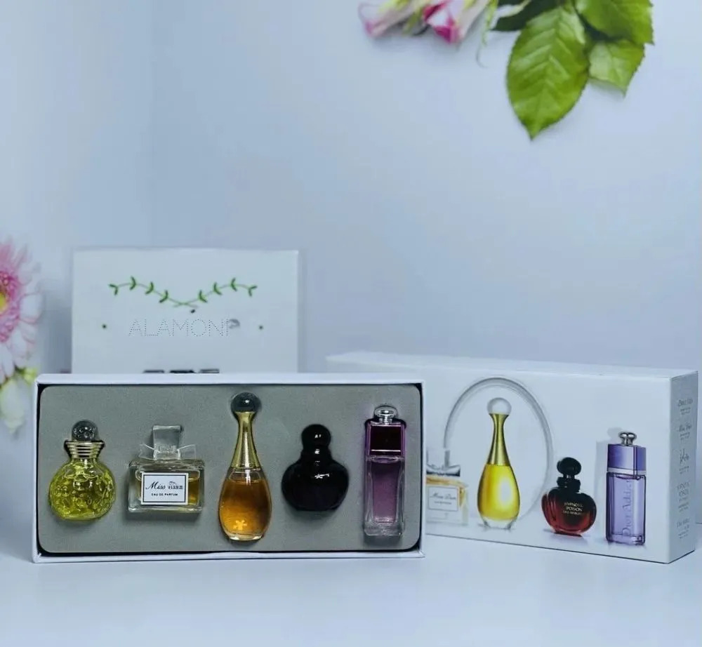 На нашем парфюм имеется набор из 5 миниатюр по 5 мл. В комплект входят такие шедевры, как: 1. Vita восточно-древесный аромат; 2. Miss шипровый цветочный аромат; 3. J’Adore; 4. Hypnotic Poison; 5. Addict To Life. Каждая туалетная вода наделена огромным рядом особенностей и преимуществ. Первый аромат создан для неповторимых женщин, принадлежит к группе восточные древесные. Вторая модель идеальна для решительных личностей, композиция букета состоит из шипровых фруктовых компонентов. Третий экземпляр для самых нежных леди, здесь лучшим образом выражены цветочные фруктовые аккорды. Окунуться в мир соблазна можно с парфюмом под номером четыре, его прекрасный аромат состоит из восточных цветочных нот. Пятый флакон воплощает в себе образ чувственной и женственной девушки, состав обогащен цветочными маслами. Подарочный набор станет прекрасным подарком. Винтажные ароматы, порадуют любую.